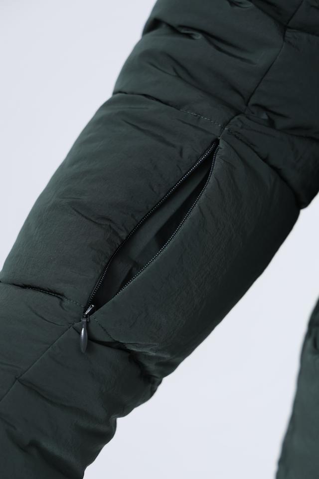 Куртка имеет стеганую текстуру, которая придает ей современный и стильный вид. Капюшон обеспечивает дополнительное тепло и защиту в непогоду. Застежка-молния позволяет легко надевать и снимать куртку.