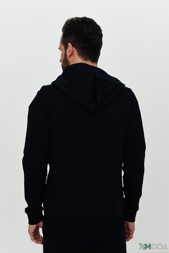 Модель имеет удобную застёжку-молнию, что позволяет регулировать степень тепла и комфорта. Декоративные полосы золотистого цвета вдоль рукавов и логотип бренда на груди придают толстовке особый шарм и узнаваемость.