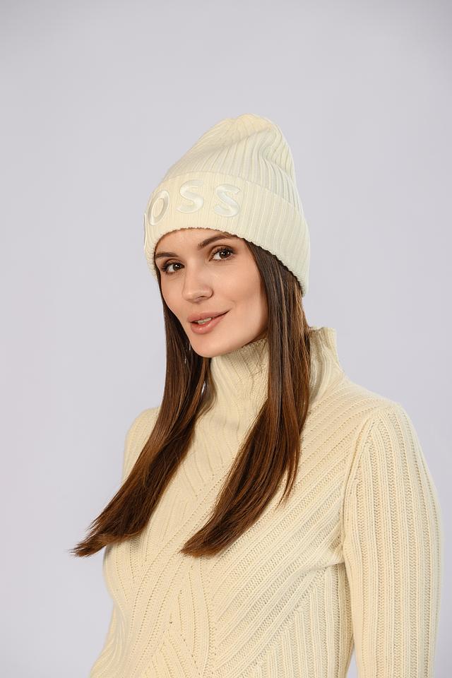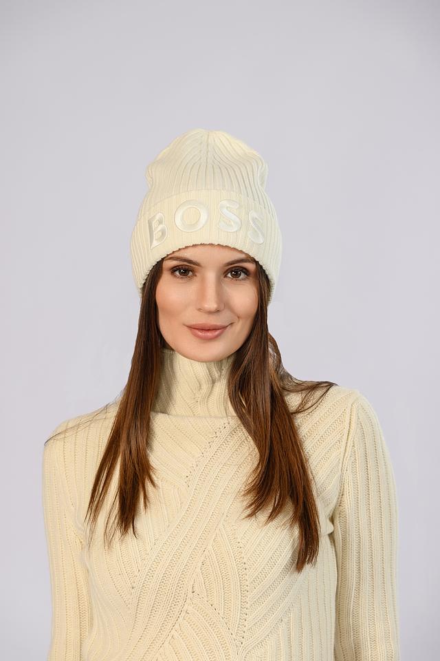 Кремовая шапка Boss Black из 100% шерсти с вышитым логотипом бренда. Классический дизайн и мягкий материал обеспечивают комфорт и тепло в холодное время года. Состав: шерсть 100%