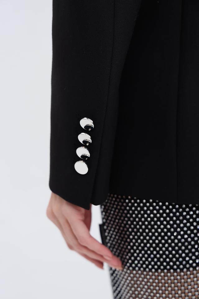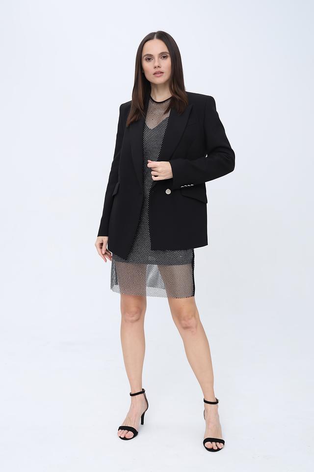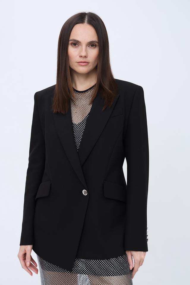 Жакет дополнен аккуратными лацканами и прорезными карманами. Состав ткани обеспечивает лёгкость и удобство в носке. Этот жакет станет отличным дополнением к вашему деловому или повседневному стилю.
