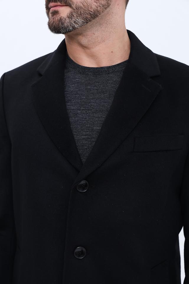 Пальто имеет прямой крой, который обеспечивает комфортную посадку по фигуре. Застёжка на пуговицы позволяет регулировать степень утепления. Высококачественная шерсть с добавлением кашемира обеспечивает тепло и мягкость, а также придает изделию роскошный вид.