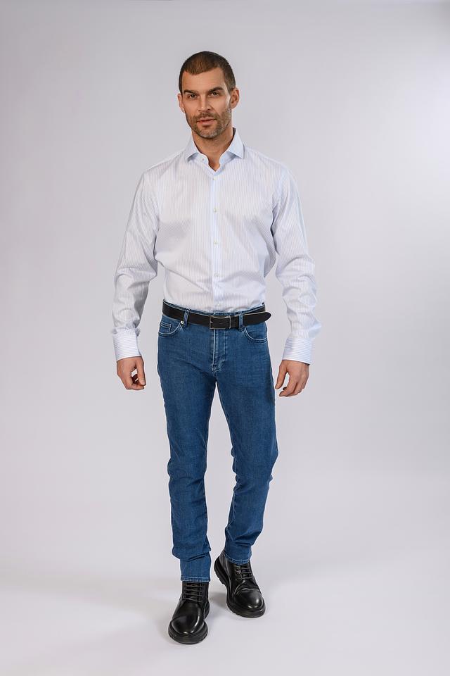 Мужская рубашка Boss Black голубого цвета с классическим кроем и вертикальной полоской. Изготовлена из 100% хлопка, обеспечивающего комфорт и воздухопроницаемость. Идеальный выбор для создания стильного и элегантного образа. Состав: хлопок 100%