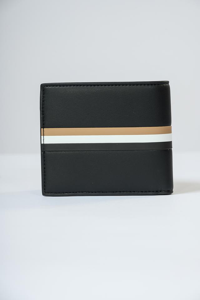 Мужской кошелек от Boss Black выполнен в классическом чёрном цвете и дополнен горизонтальной полоской бежевого и белого оттенков. Кошелек имеет прямоугольную форму с аккуратными швами и лаконичным дизайном.