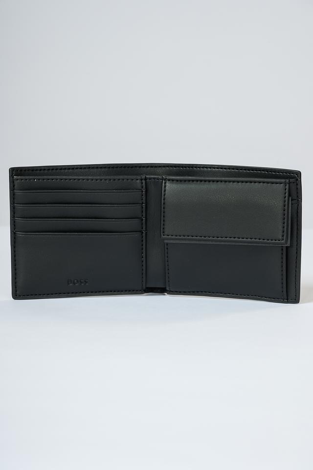 Изготовлен из высококачественного полиуретана и полиэстера, что обеспечивает долговечность и практичность в использовании. Логотип бренда Boss Black расположен на лицевой стороне кошелька.