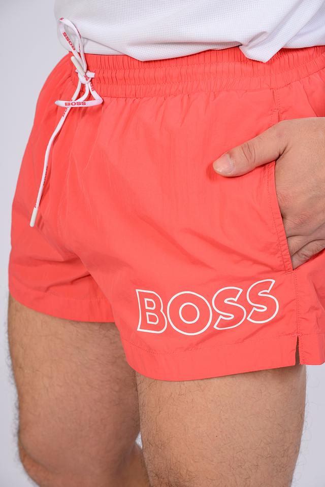 Плавки от Boss Black кораллового цвета — это стильный выбор для пляжа или бассейна. Модель выполнена из быстросохнущего материала и украшена логотипом бренда. Удобный крой обеспечивает комфорт во время активного отдыха. Состав: полиамид 100%