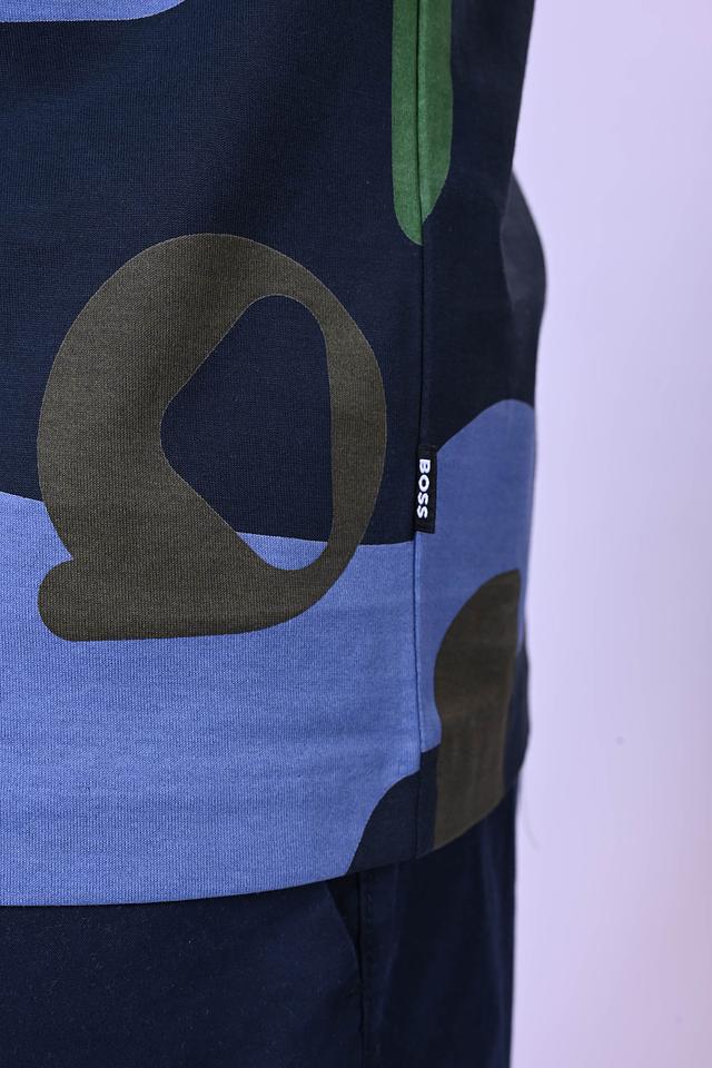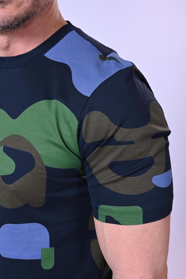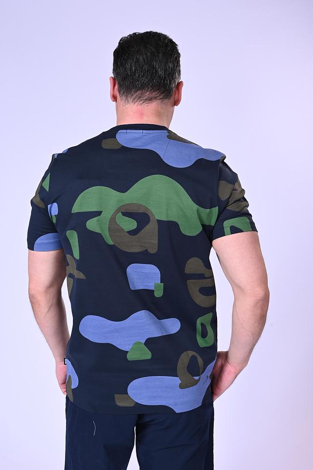 Мужская футболка Boss Black синего цвета с оригинальным камуфляжным принтом. Изготовлена из 100% хлопка, обеспечивающего комфорт и воздухопроницаемость. Стильный и современный выбор для повседневного гардероба. Состав: хлопок 100%