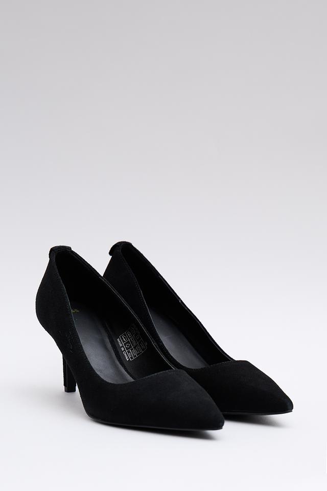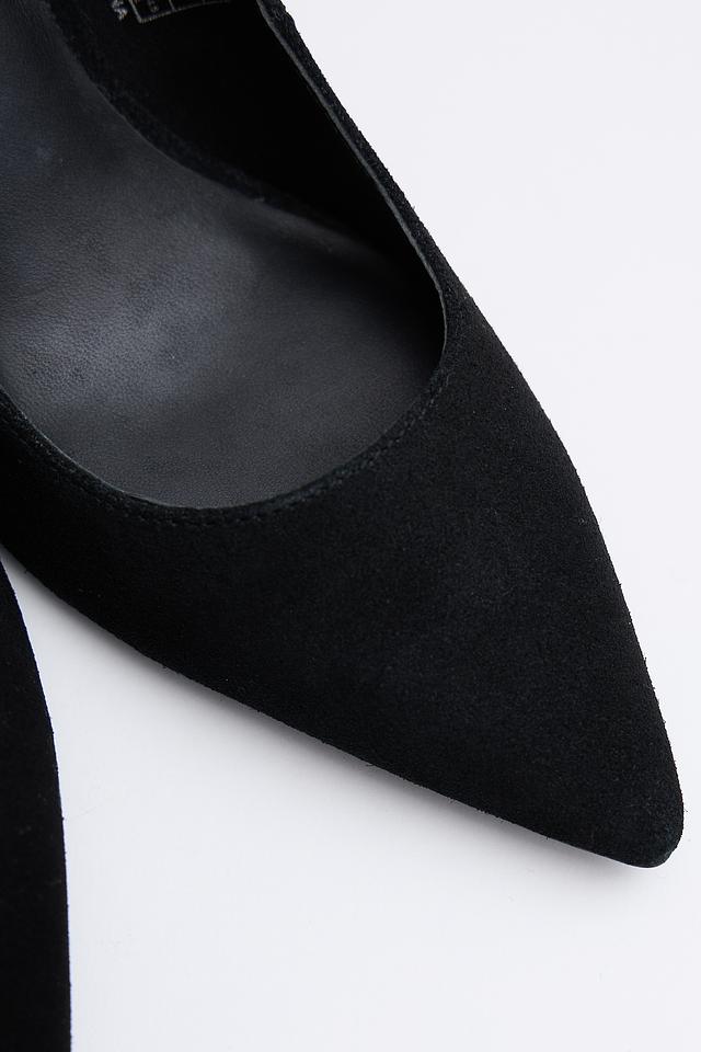 Туфли изготовлены из высококачественной замши, что обеспечивает комфорт и долговечность. Внутренняя отделка также выполнена из натуральной кожи, что позволяет ногам дышать и предотвращает появление неприятного запаха. Заостренный носок визуально удлиняет стопу, а устойчивый каблук обеспечивает комфорт при ходьбе.