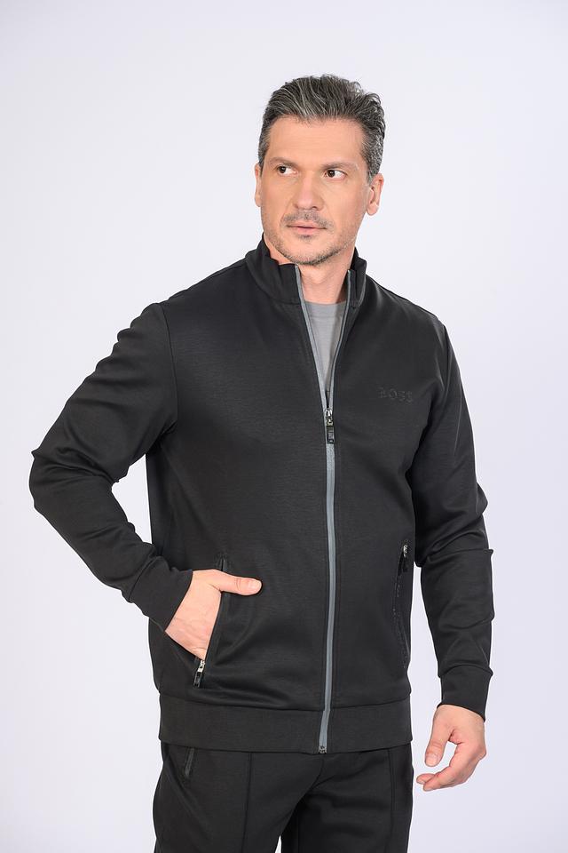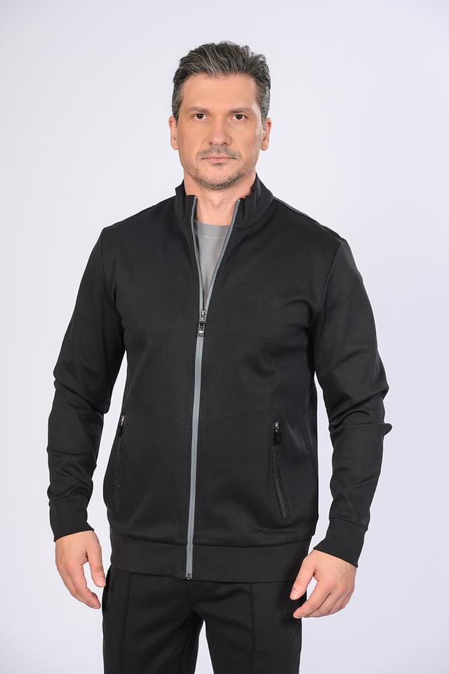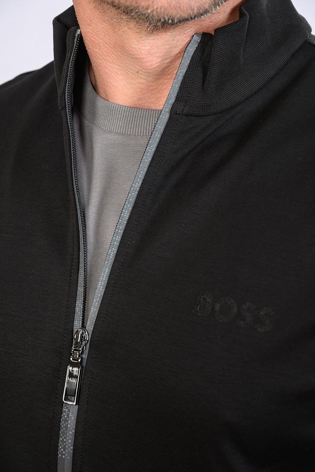Чёрный кардиган Boss Green на молнии – стильная и комфортная модель для повседневной носки. Изготовлен из хлопка с добавлением полиэстера, имеет удобные боковые карманы и логотип бренда. Состав: хлопок 73%, полиэстер 27%
