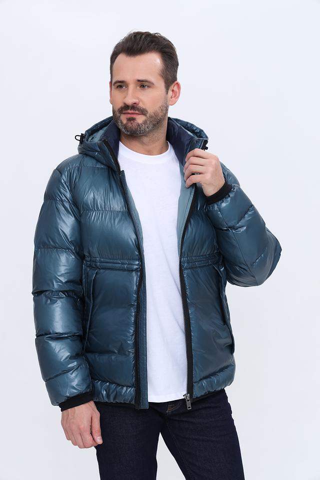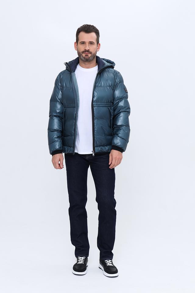 Куртка имеет стеганую фактуру, которая придает ей современный и стильный вид. Синий цвет модели универсален и легко сочетается с различными элементами одежды. Капюшон обеспечивает дополнительную защиту от ветра и непогоды.