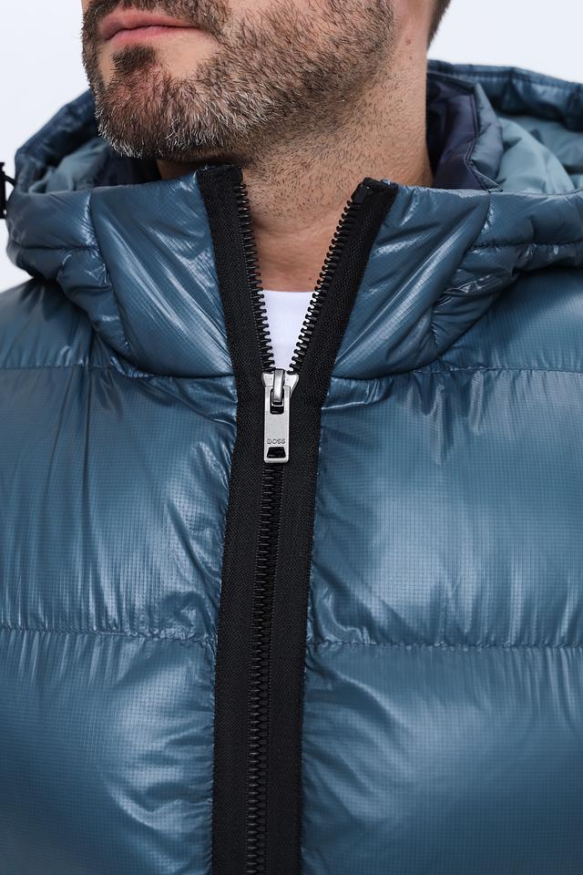 Стильная мужская куртка Boss Orange синего цвета с эффектной стеганой фактурой. Модель выполнена из 100% полиамида, обеспечивающего легкость и практичность. Куртка оснащена удобным капюшоном и функциональными карманами. Состав: полиамид 100%