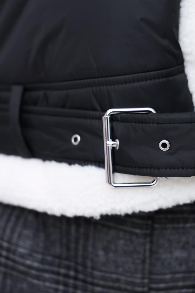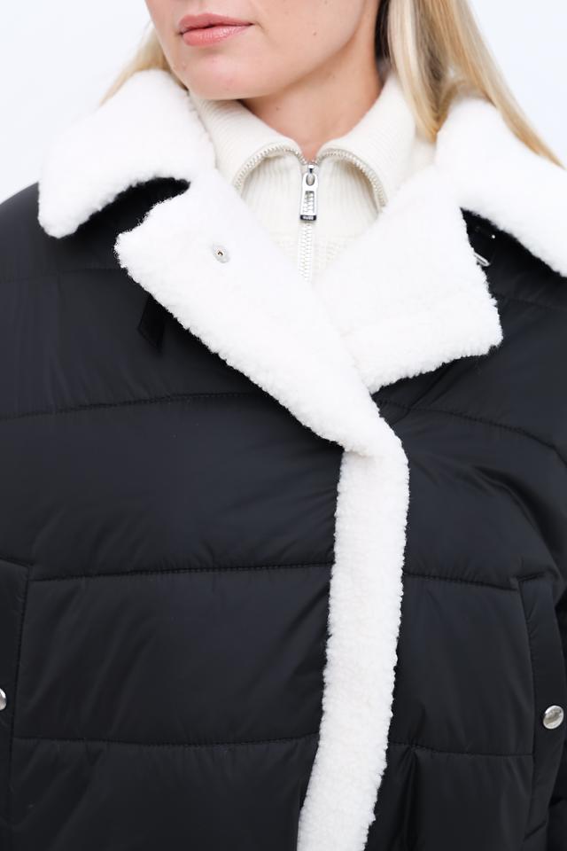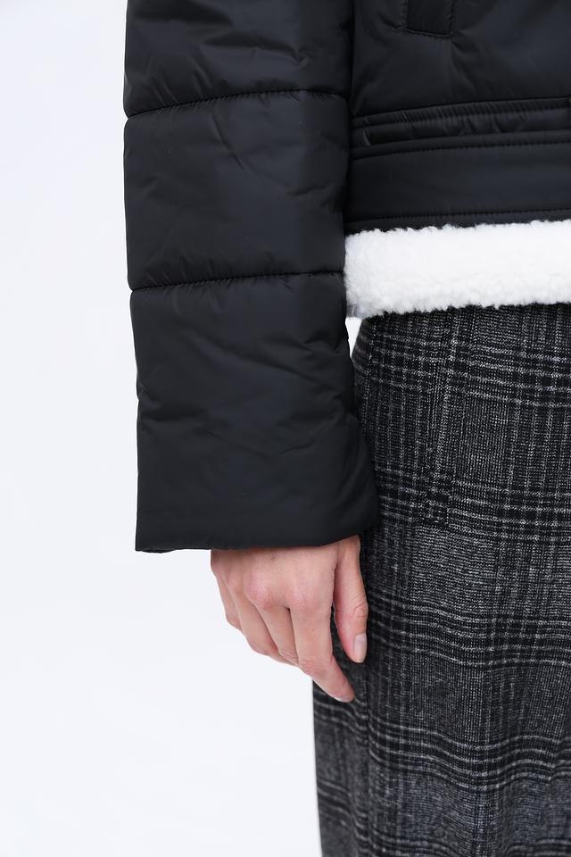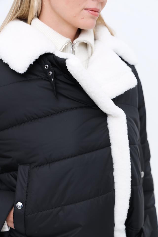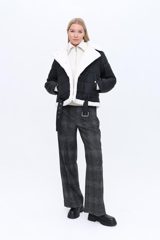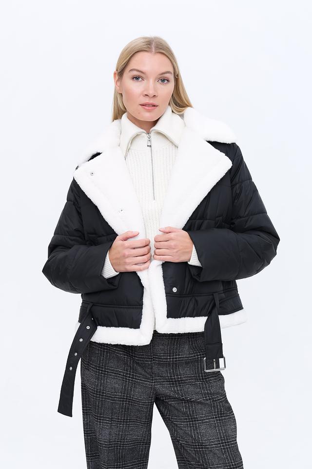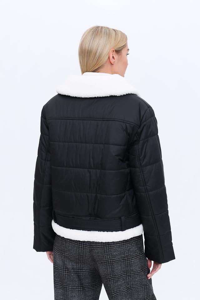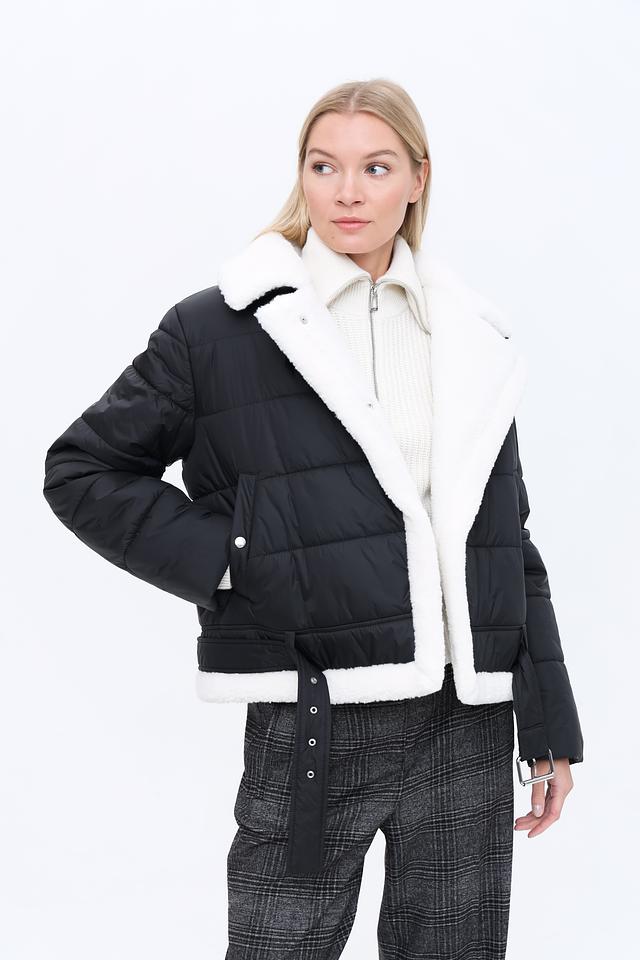 Куртка имеет стеганую текстуру, которая придает ей особый шарм. Высокий воротник отделан искусственным мехом белого цвета, обеспечивая дополнительное тепло и комфорт в холодную погоду. Застежка – молния. Модель дополнена поясом с металлической пряжкой, который позволяет подчеркнуть талию и создать более женственный силуэт.