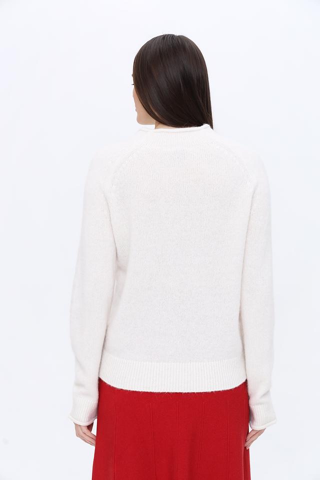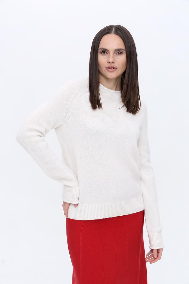 Джемпер имеет классический крой с круглым вырезом горловины и длинными рукавами. Изготовлен из высококачественной пряжи, в состав которой входит шерсть (52%), полиамид (26%) и альпака (22%). Такое сочетание материалов обеспечивает мягкость, тепло и долговечность изделия.