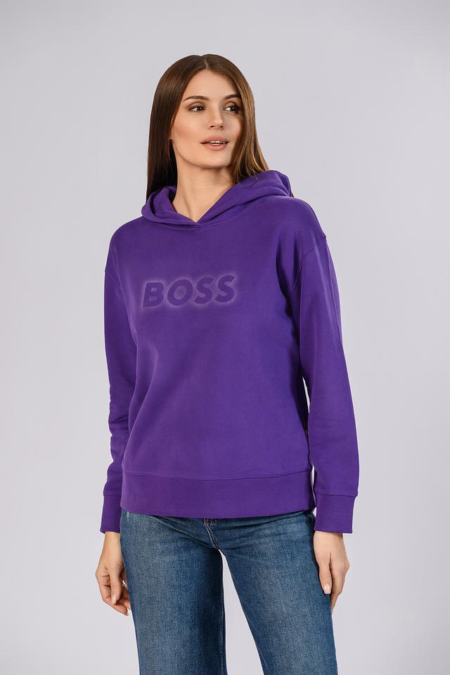 Женская толстовка Boss Orange фиолетового цвета с капюшоном и надписью "BOSS" на груди. Изготовлена из мягкого хлопка, обеспечивающего комфорт и удобство в носке. Состав: хлопок 100%