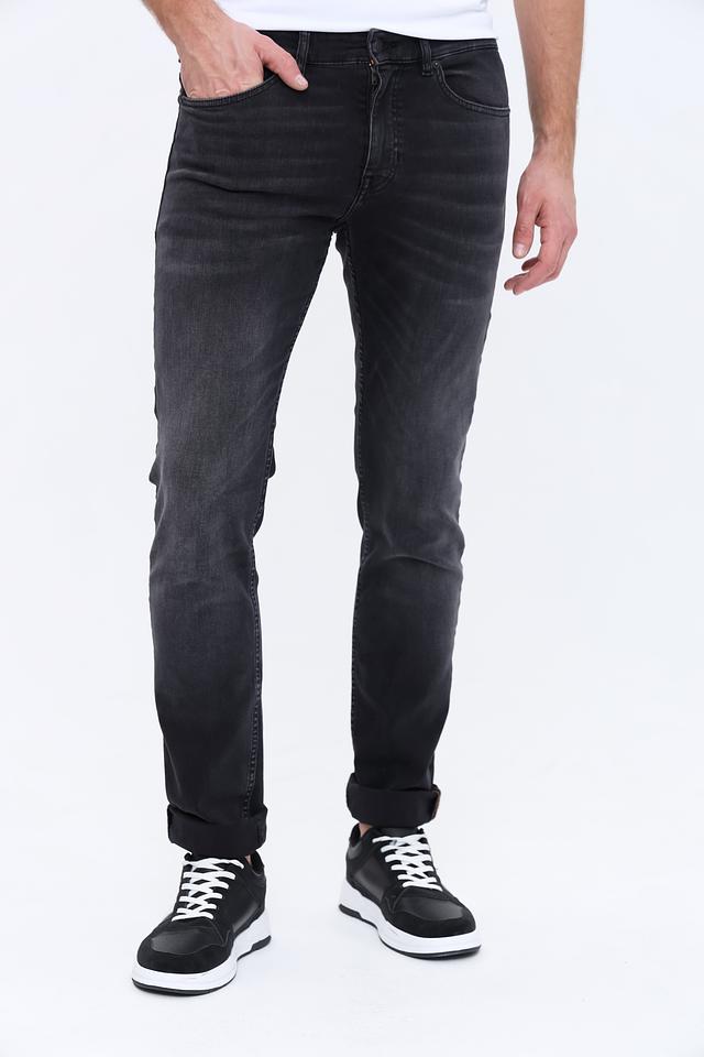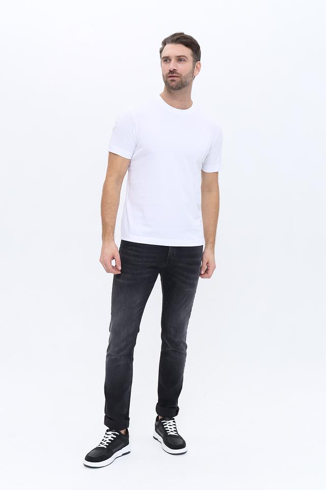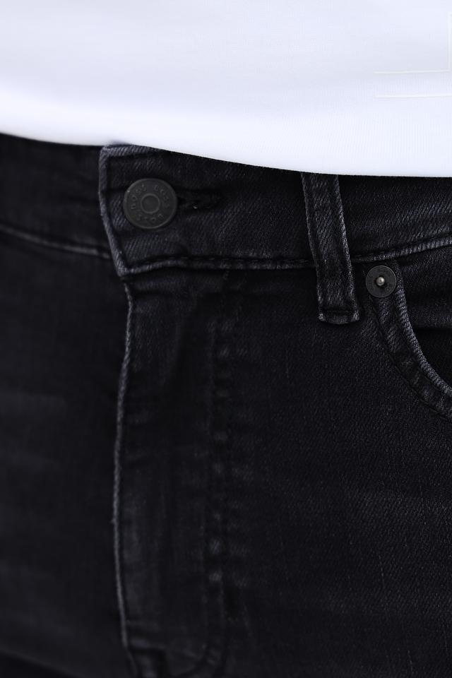 Крой slim fit обеспечивает плотное прилегание по фигуре, подчеркивая силуэт. Джинсы имеют стандартную посадку и застежку на молнию с пуговицей. Эффект потертости придает джинсам более расслабленный и современный вид.