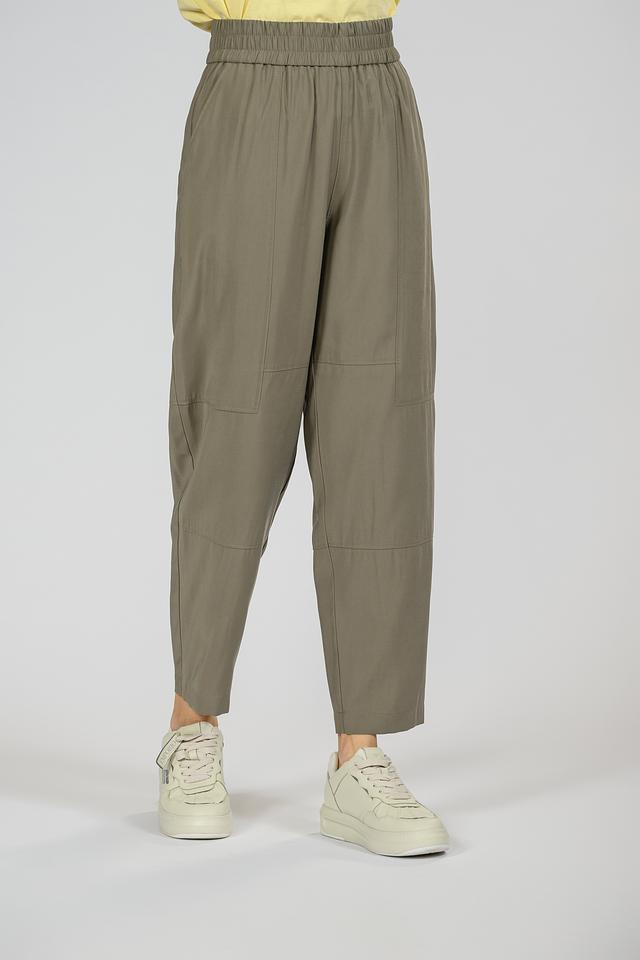 Брюки имеют свободный крой и эластичный пояс на талии, что обеспечивает максимальный комфорт в носке. Наличие боковых карманов добавляет функциональности. Модель выполнена из качественной вискозы с добавлением полиэстера, благодаря чему брюки хорошо держат форму и приятны к телу.