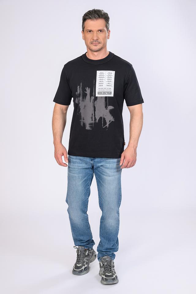 Чёрная футболка Boss Orange с оригинальным принтом "Boss on Tour". Изготовлена из 100% хлопка, обеспечивая комфорт и воздухопроницаемость. Стильный дизайн с графическими элементами и надписями делает эту футболку отличным выбором для повседневного образа. Состав: хлопок 100%