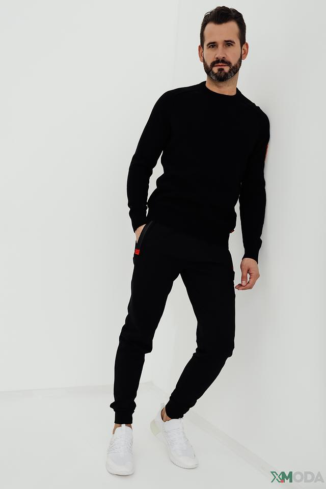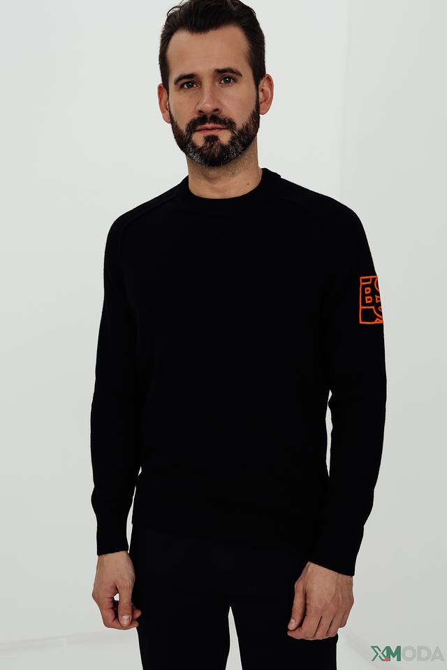 На левом рукаве расположен контрастный оранжевый логотип бренда, добавляющий изделию индивидуальности и узнаваемости. Джемпер изготовлен из смеси шерсти (40%), хлопка (40%) и полиамида (20%), что обеспечивает комфорт, тепло и долговечность.