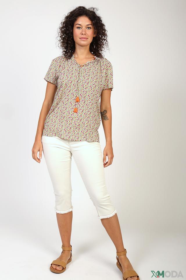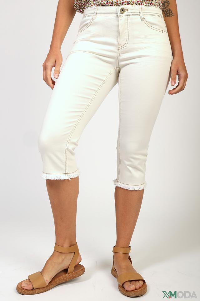 Бриджи имеют укороченный крой и классическую посадку по фигуре. Необработанный край со стильной бахромой добавляет образу оригинальности и подчеркивает современный дизайн.