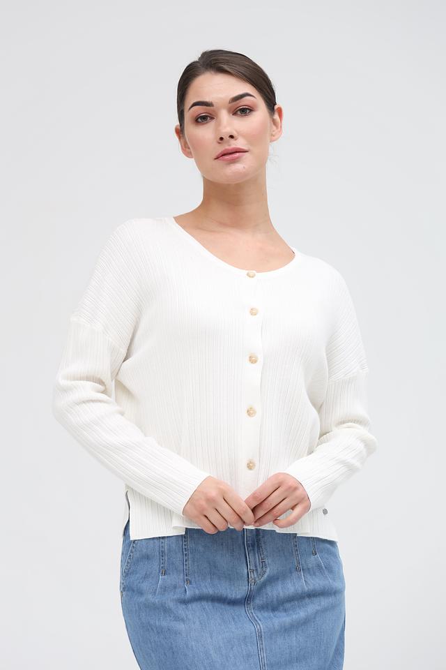 Белый жакет от Broadway выполнен из мягкого вязаного полотна с V-образным вырезом и застёжкой на пуговицы. Удобный крой и приятный материал делают этот жакет отличным выбором для создания стильных образов. Состав: вискоза 80%, нейлон 20%