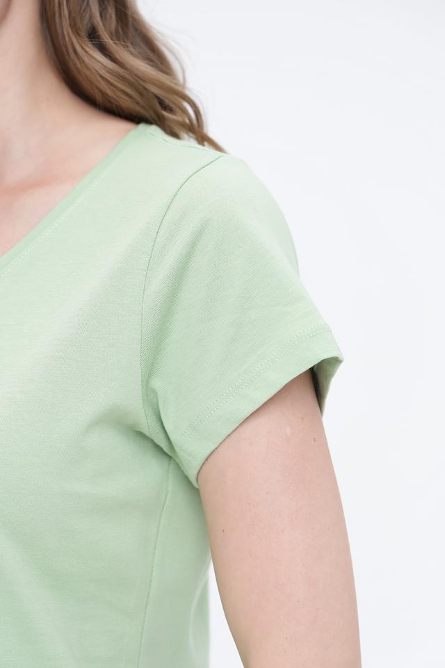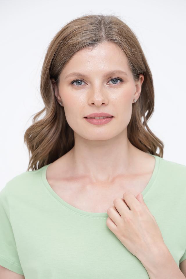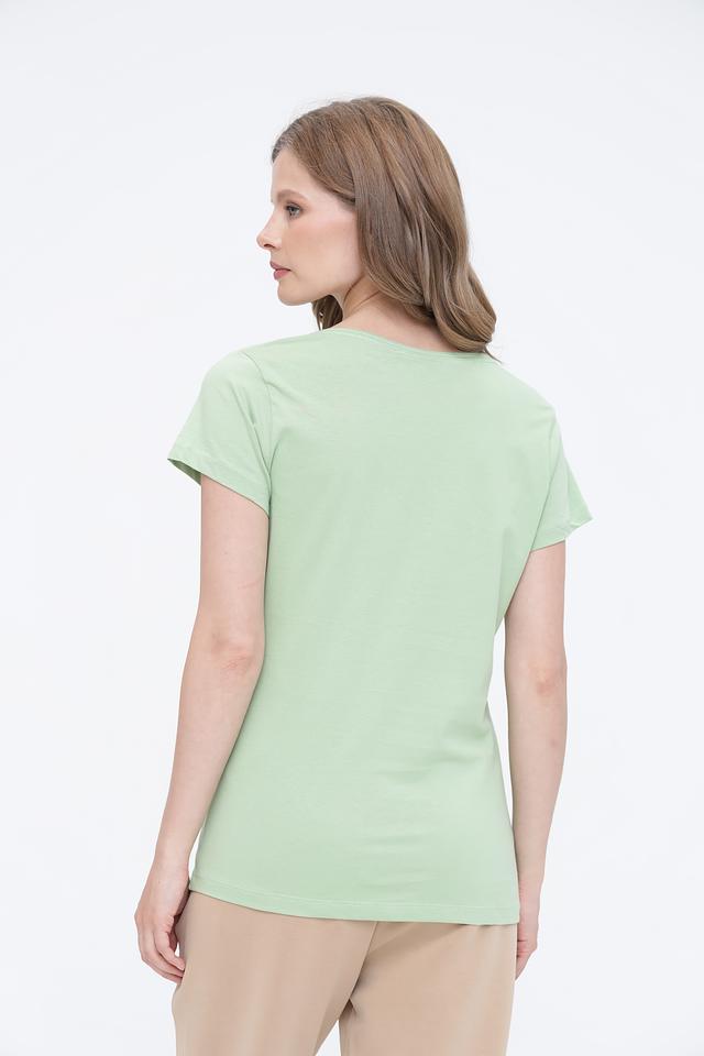 Мятный цвет футболки освежает образ и придает ему легкость. Ткань приятна к телу, хорошо дышит и не сковывает движения. Состав: хлопок 98%, эластан 2%.