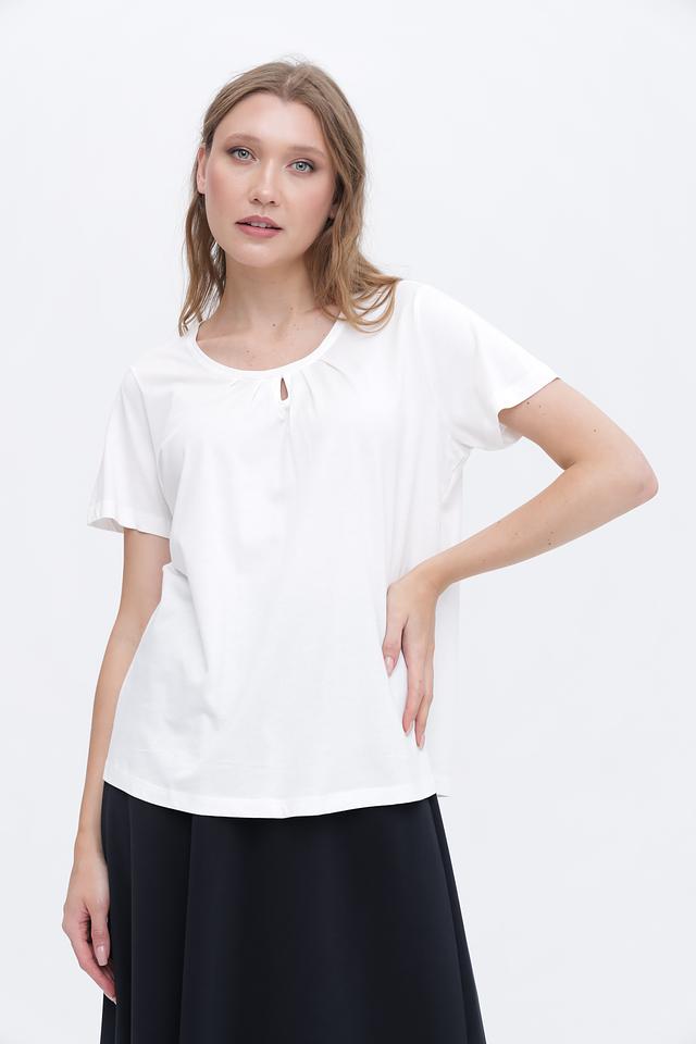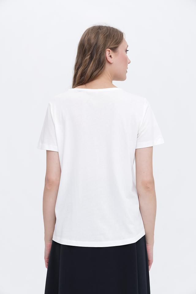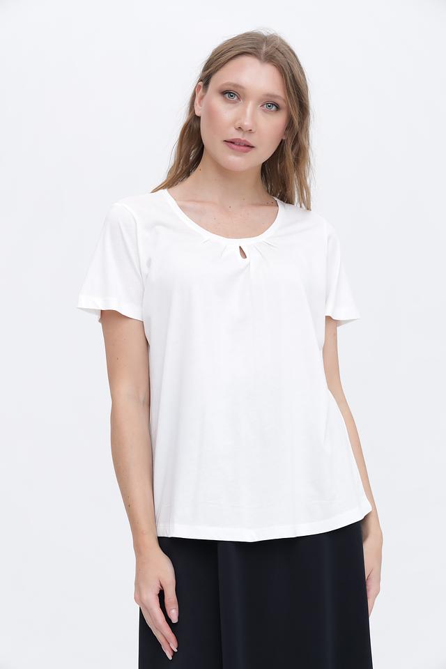 Особенностью данной модели является небольшой вырез на горловине, который добавляет ей изысканности и оригинальности. Футболка имеет прямой крой, который подходит для любой фигуры.
