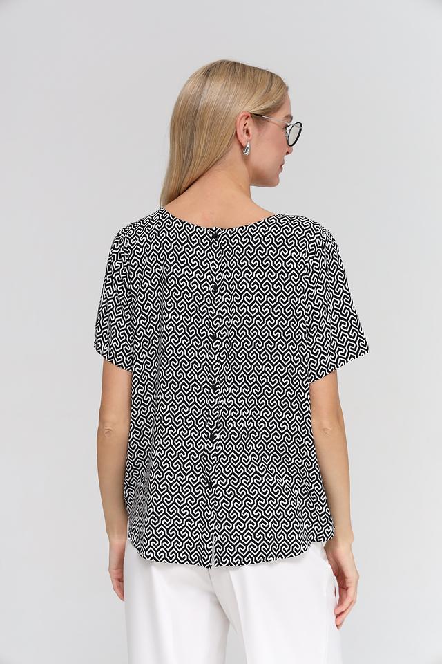 Эта блуза от Broadway – идеальный выбор для создания элегантного и современного образа. Выполнена в черном цвете с выразительным геометрическим принтом, который придает ей особую изысканность.
