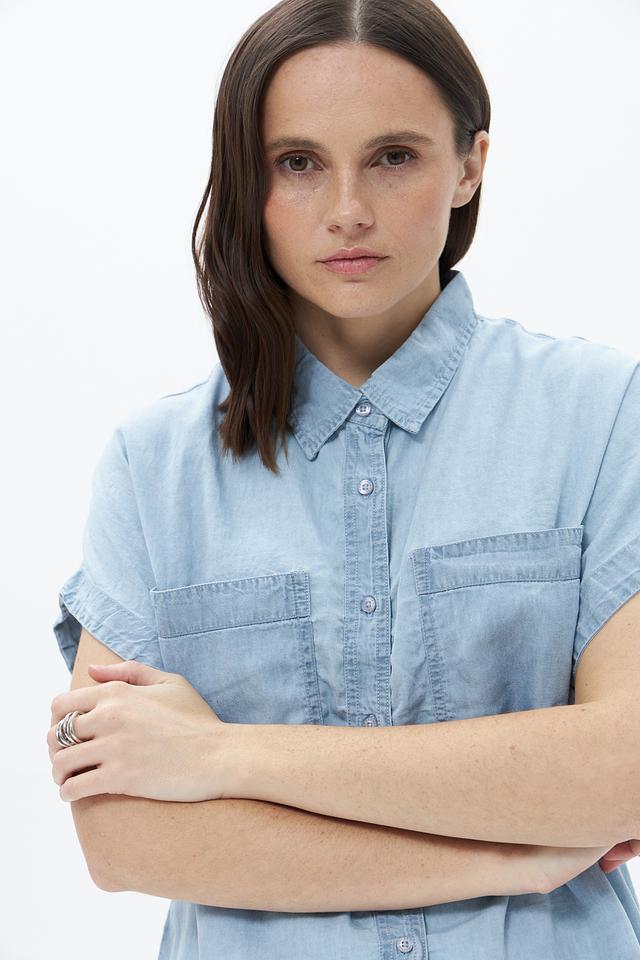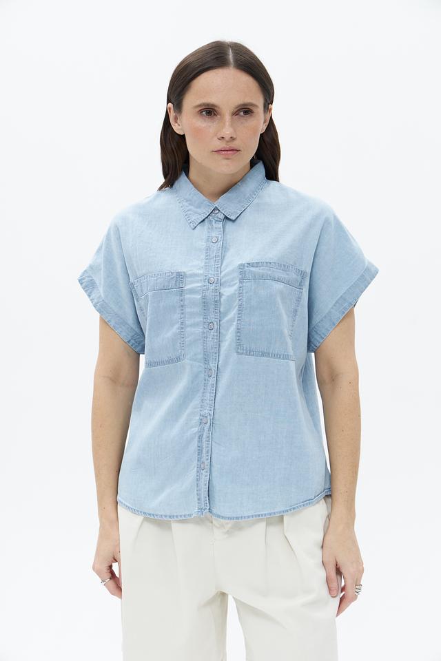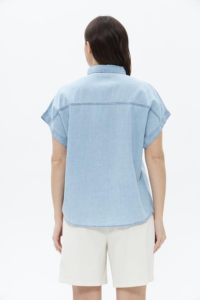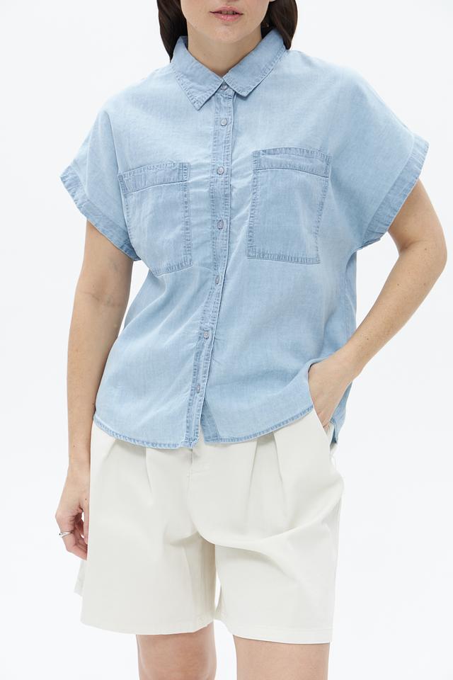 Джинсовая блуза Broadway голубого цвета с короткими рукавами и накладными карманами. Выполнена из мягкого и приятного к телу сочетания лиоцелла и хлопка, обеспечивающего комфорт в носке. Отличный выбор для создания повседневных образов. Состав: лиоцел 65%, хлопок 35%