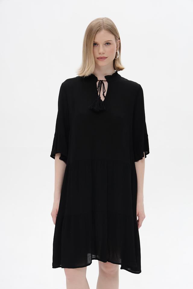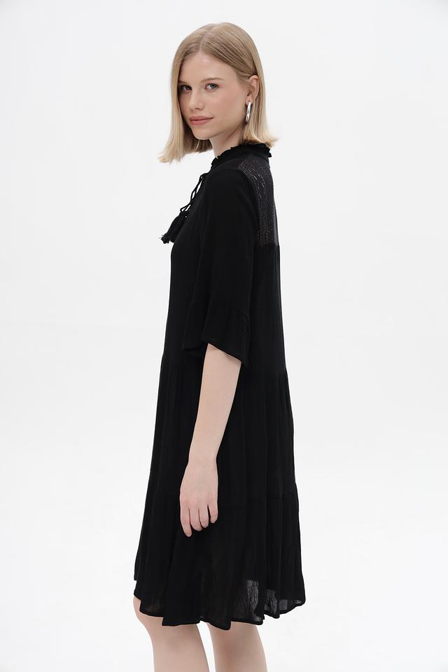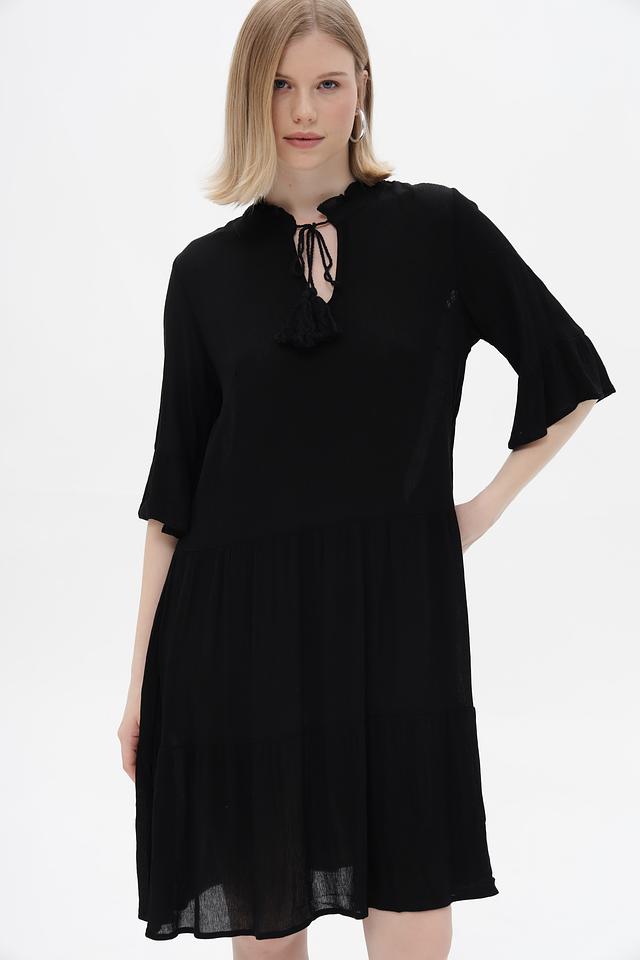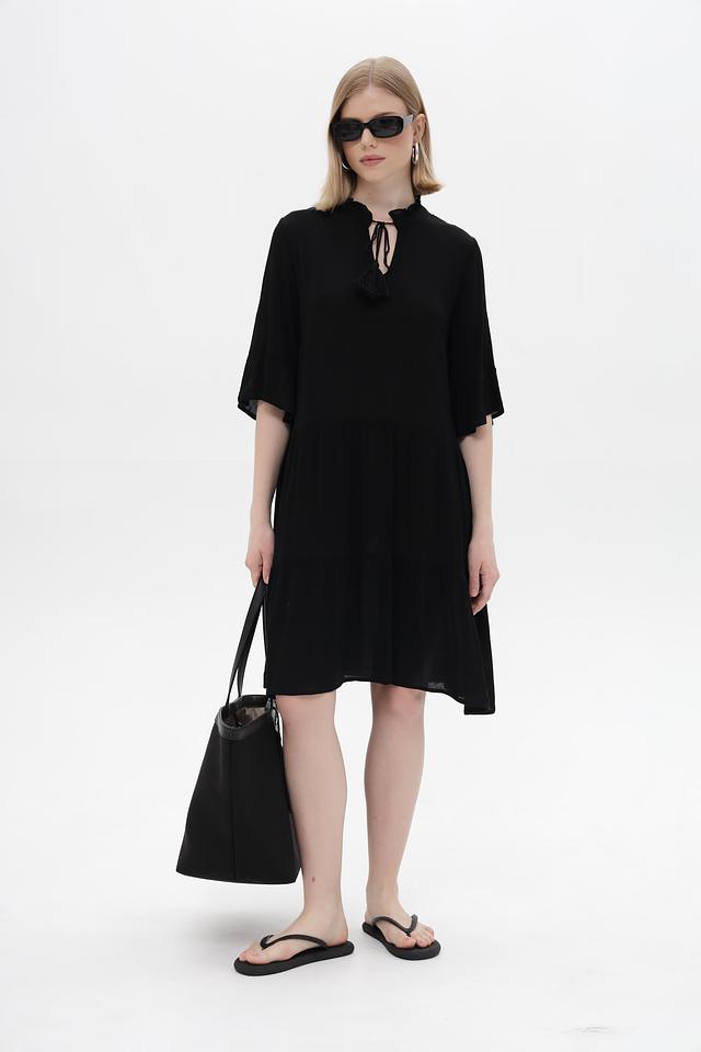 Это стильное платье от бренда Broadway выполнено из мягкой и приятной к телу вискозы. Преобладающий цвет – чёрный, что делает его универсальным для различных случаев.