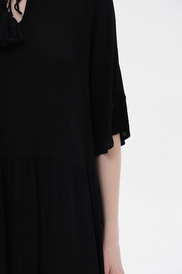 Многоярусная юбка добавляет платью лёгкости и воздушности. Это платье станет отличным выбором для создания повседневного или вечернего образа. Состав: 100% вискоза.