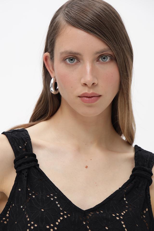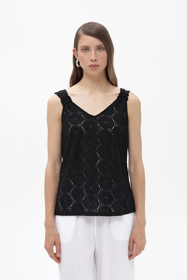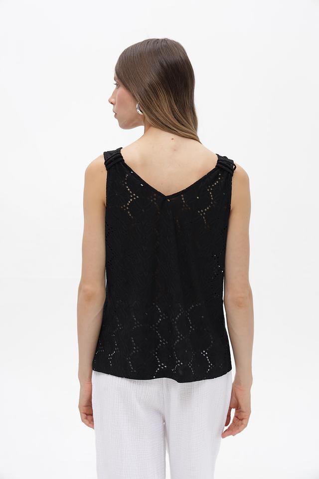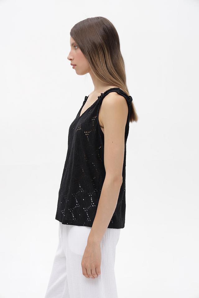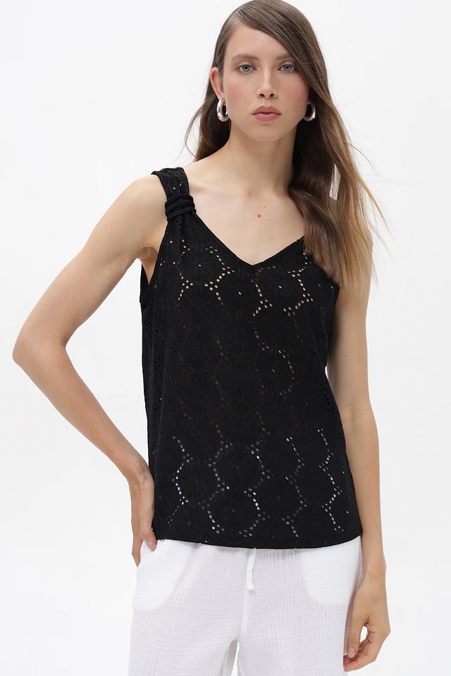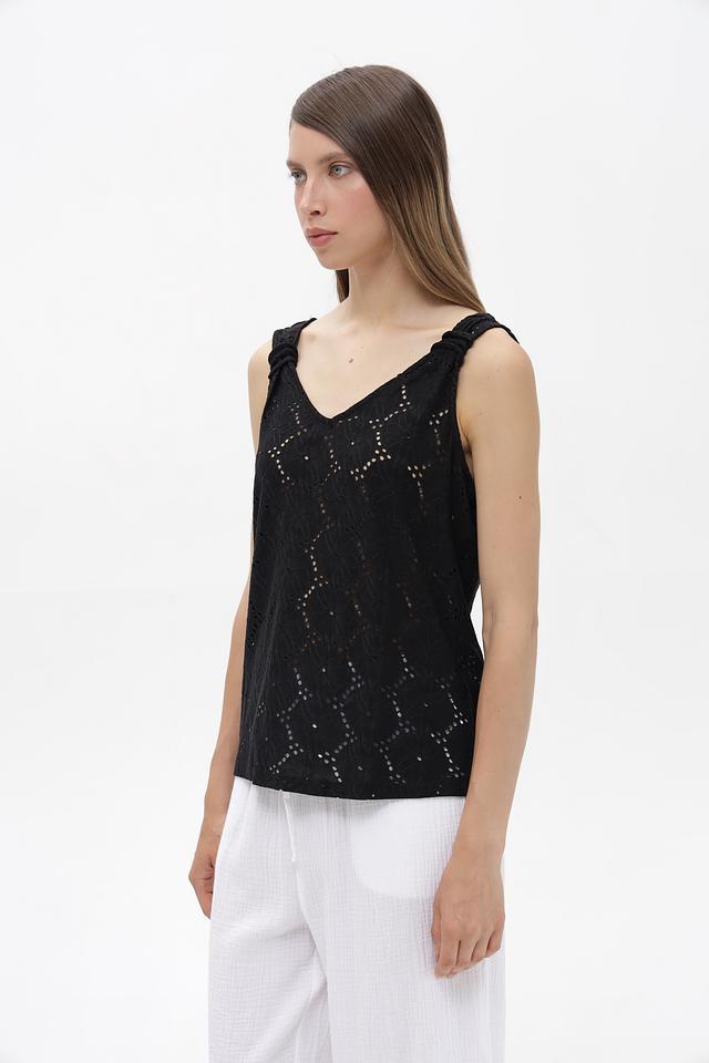 Чёрный топ от Broadway с изящной вышивкой – стильное и лёгкое решение для летнего гардероба. Модель выполнена из полиэстера с добавлением эластана, что обеспечивает комфорт и свободу движений. Состав: полиэстер 95%, эластан 5%