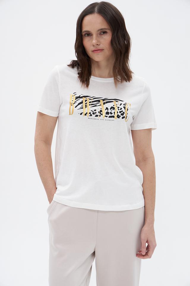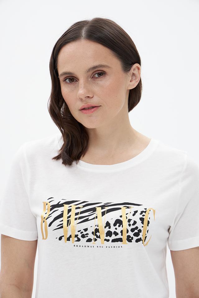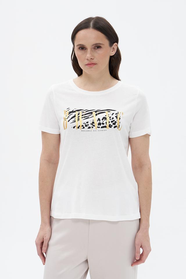 Белая футболка от Broadway с оригинальным принтом в виде сочетания анималистичных мотивов. Изготовлена из мягкой и приятной к телу ткани на основе вискозы и хлопка. Состав: вискоза 50%, хлопок 50%