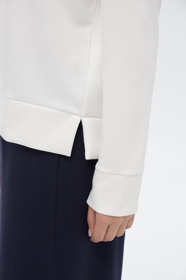 Состав ткани: 50% полиэстер, 45% вискоза, 5% эластан. Это сочетание обеспечивает изделию мягкость, приятные тактильные ощущения и хорошую износостойкость. Пуловер легко стирается и быстро сохнет.