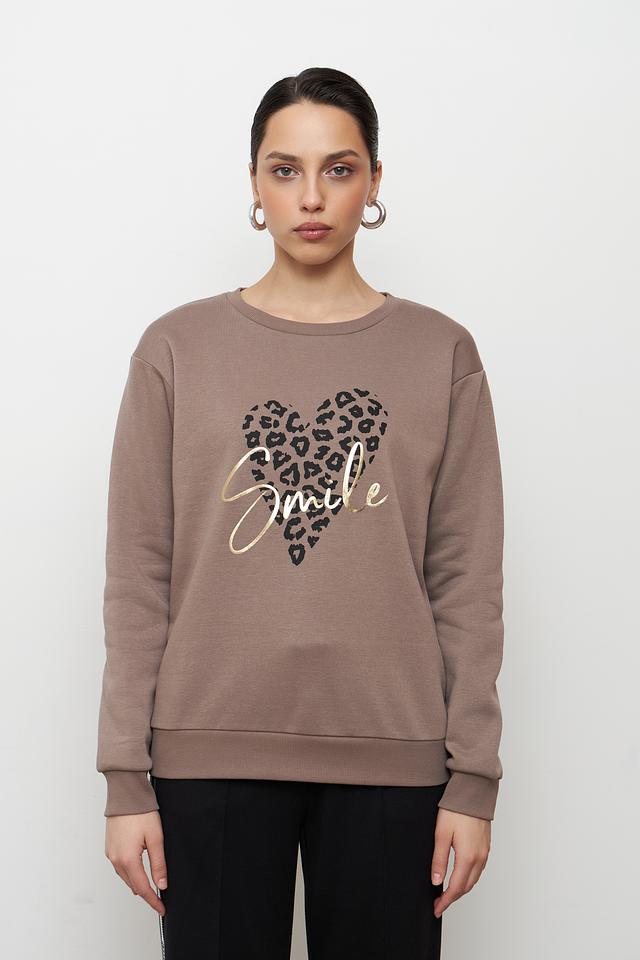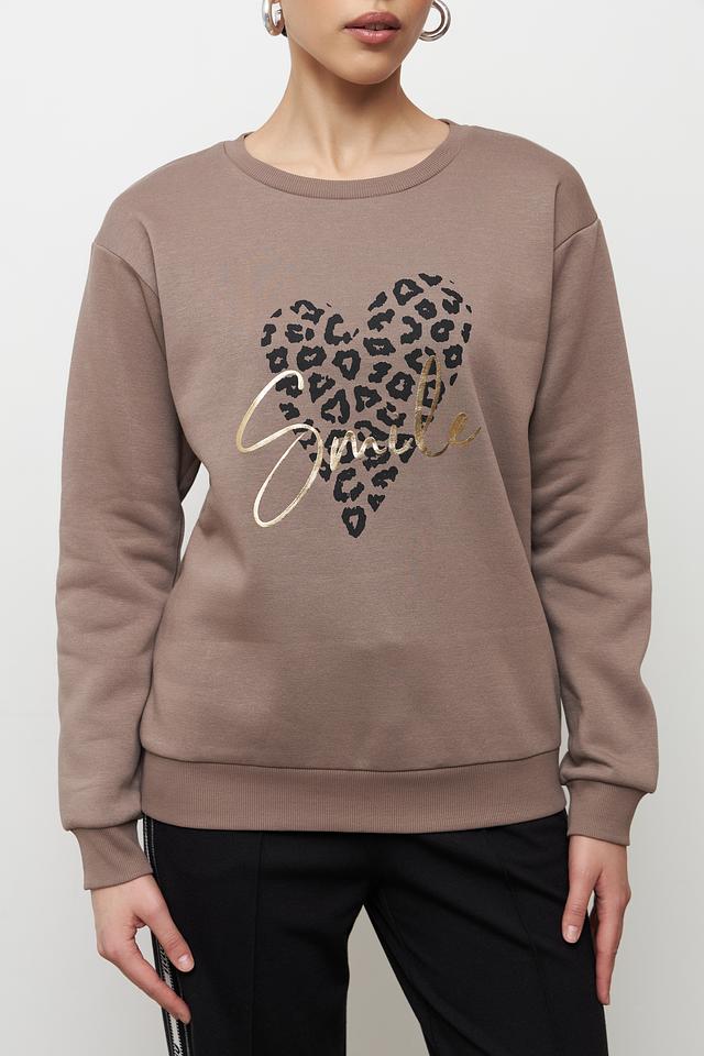 Женский пуловер Broadway бежевого цвета с оригинальным принтом в виде сердца с леопардовым узором и надписью "Smile". Удобный крой и мягкий хлопок с добавлением полиэстера обеспечат комфорт в повседневной носке. Состав: хлопок 60%, полиэстер 40%