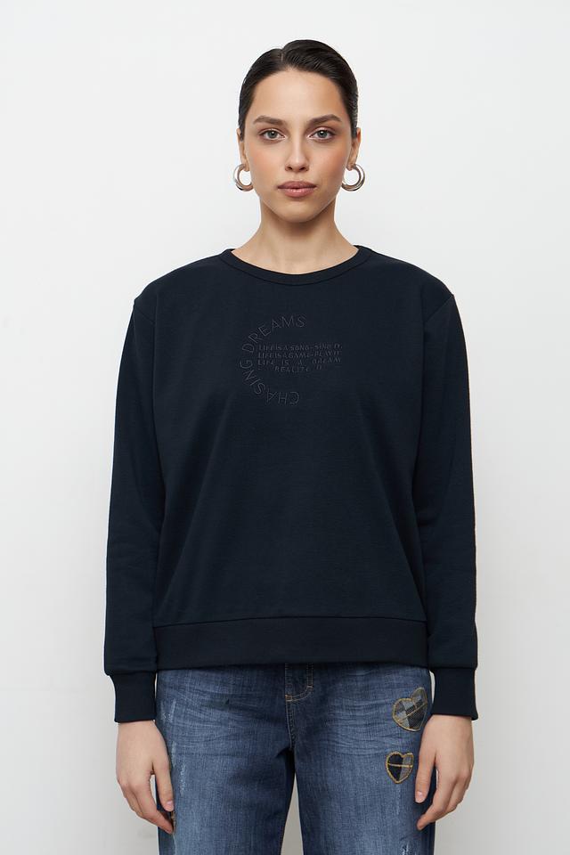 Чёрный пуловер от Broadway из хлопка с полиэстером, украшен принтом с надписью. Модель имеет свободный крой и круглый вырез горловины, что обеспечивает комфорт и стиль в повседневном образе. Состав: хлопок 60%, полиэстер 40%