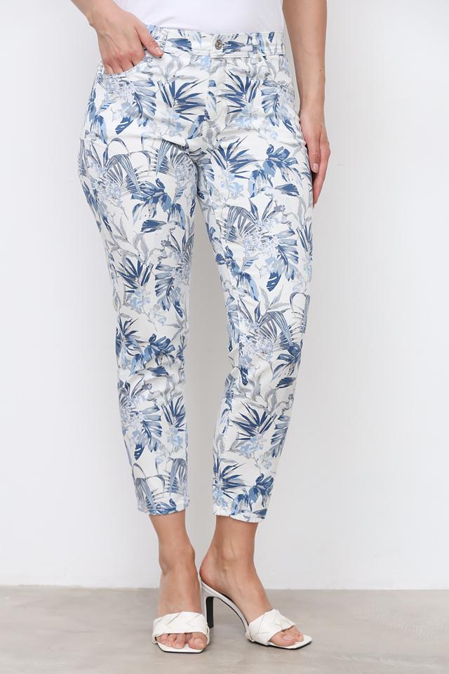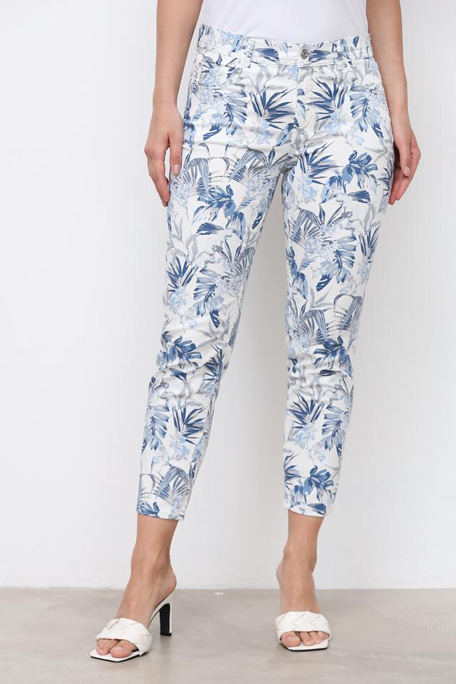 Женские брюки Angels голубого цвета с ярким цветочным принтом станут стильным дополнением к вашему гардеробу. Модель выполнена из мягкого хлопка с добавлением эластана для комфортной посадки и свободы движений. Состав: хлопок 98%, эластан 2%