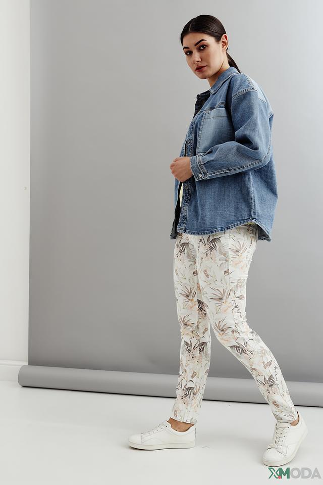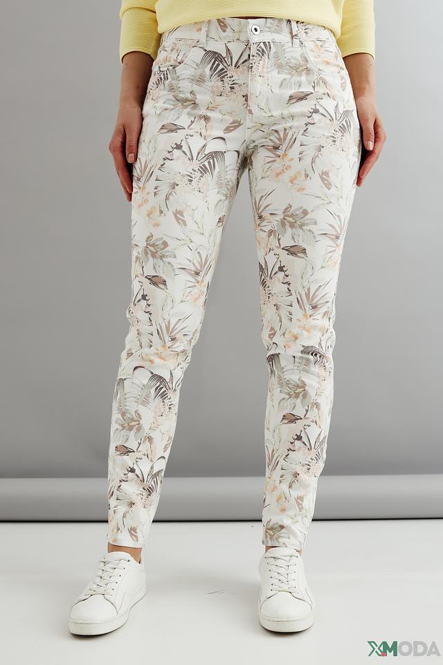 Представляем вашему вниманию стильные брюки от бренда Angels. Эта модель выполнена в бежевом цвете и украшена ярким цветочным принтом, что придает ей особый шарм и женственность.