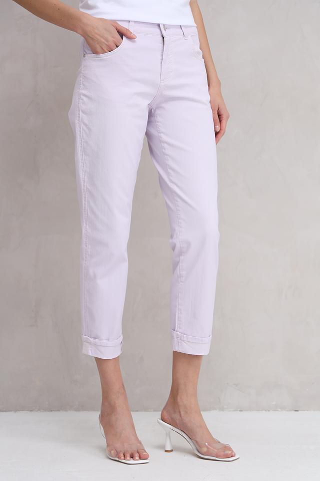 Женские брюки Angels нежного лавандового цвета — это стильное и комфортное решение для создания повседневных образов. Укороченный крой и эластичный состав обеспечивают удобную посадку и свободу движений. Состав: хлопок 98%, эластан 2%
