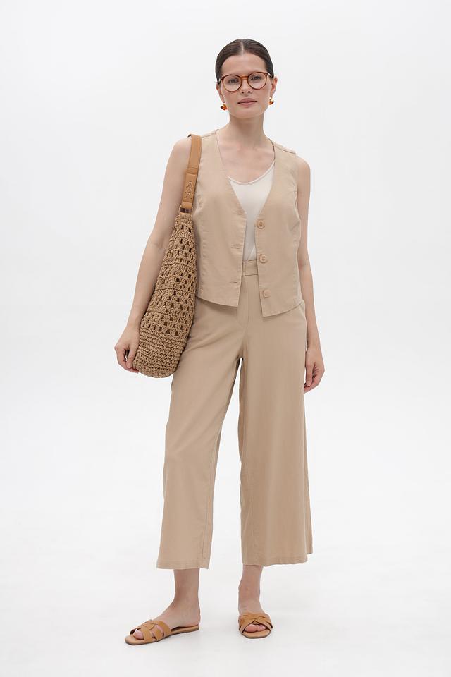 Бежевые брюки-кюлоты от Betty Barclay — стильное и комфортное решение для создания повседневных образов. Модель выполнена из лёгкой ткани на основе льна и вискозы, обеспечивающей комфорт в жаркую погоду. Состав: лен 55%, вискоза 45%