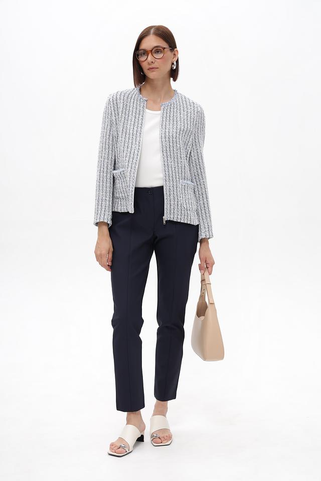 Женские брюки Betty Barclay классического темно-синего цвета, узкого кроя. Изготовлены из полиамида с добавлением эластана, обеспечивающего комфорт и свободу движений. Идеальный выбор для создания делового и повседневного образа. Состав: полиамид 88%, эластан 12%
