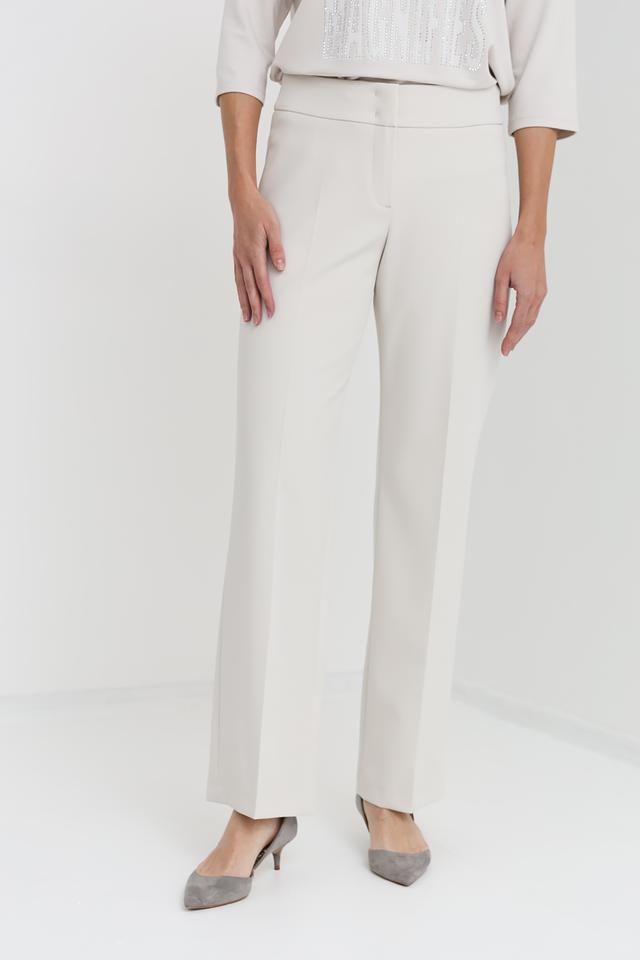 Брюки имеют прямой крой и стандартную посадку по талии. Ткань, состоящая из 88% полиэстера и 12% эластана, обеспечивает комфорт в носке, устойчивость к сминанию и хорошую посадку по фигуре.