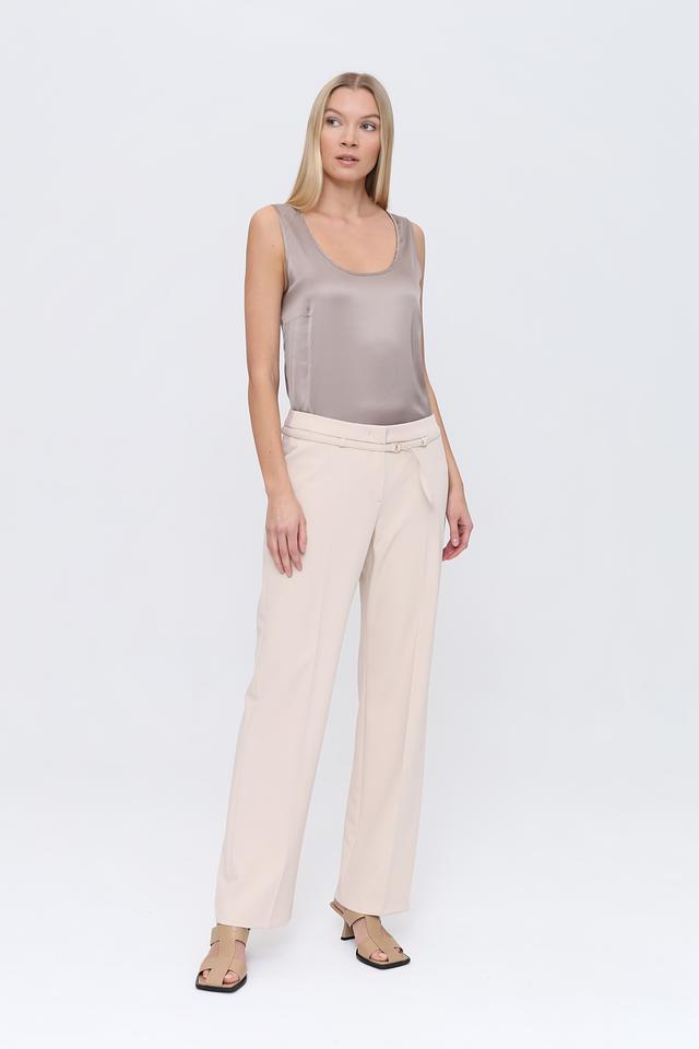 Эти брюки прекрасно сочетаются с блузками, рубашками, топами и жакетами, создавая элегантные и стильные комплекты. Они станут отличным выбором для офиса, деловых встреч, а также для повседневной носки. Благодаря нейтральному цвету, их легко комбинировать с различными аксессуарами и обувью.
