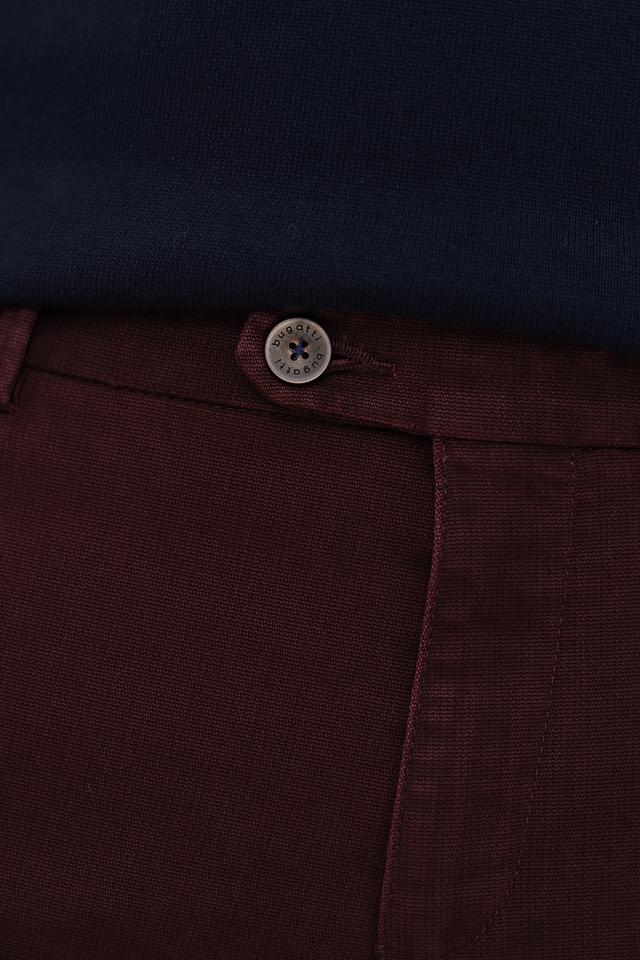 Мужские брюки от Bugatti выполнены в насыщенном бордовом цвете. Модель отличается классическим кроем с прямыми штанинами, что обеспечивает комфортную посадку и свободу движений.