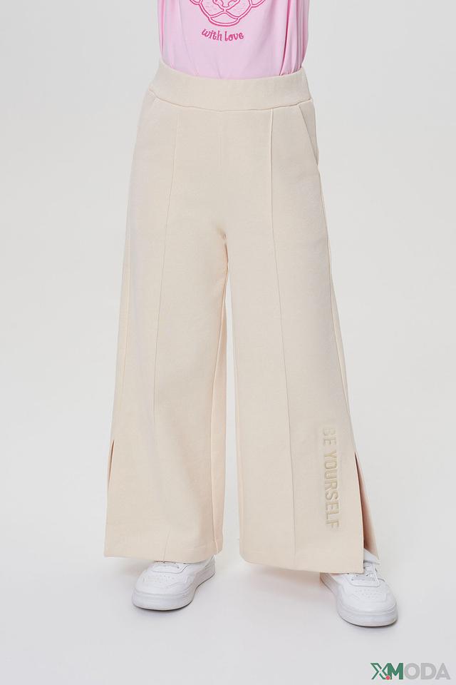 Бежевые брюки Choupette для девочки — удобная и стильная модель с широкими штанинами и надписью "BE YOURSELF". Изготовлены из мягкого хлопка с добавлением полиэстера для комфорта и долговечности. Состав: хлопок 90%, полиэстер 10%
