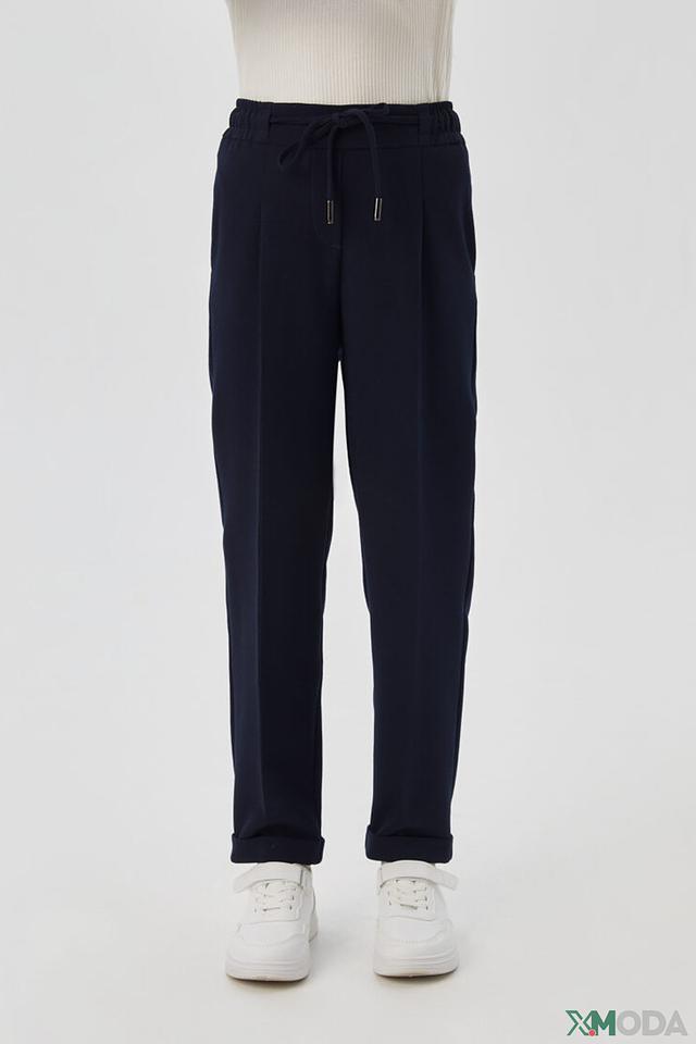 Брюки имеют удобный эластичный пояс с регулирующими шнурками, обеспечивающими идеальную посадку. Манжеты внизу брюк добавляют образу аккуратности и стиля.