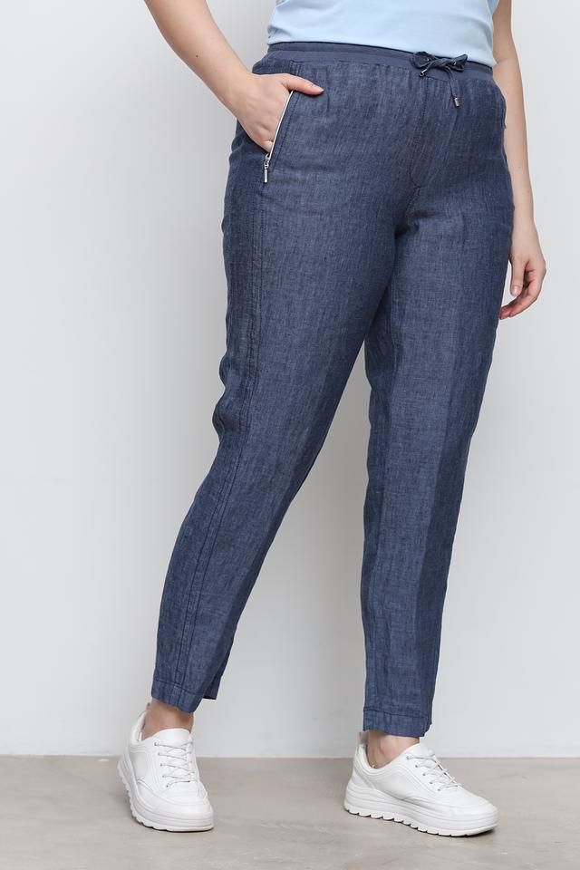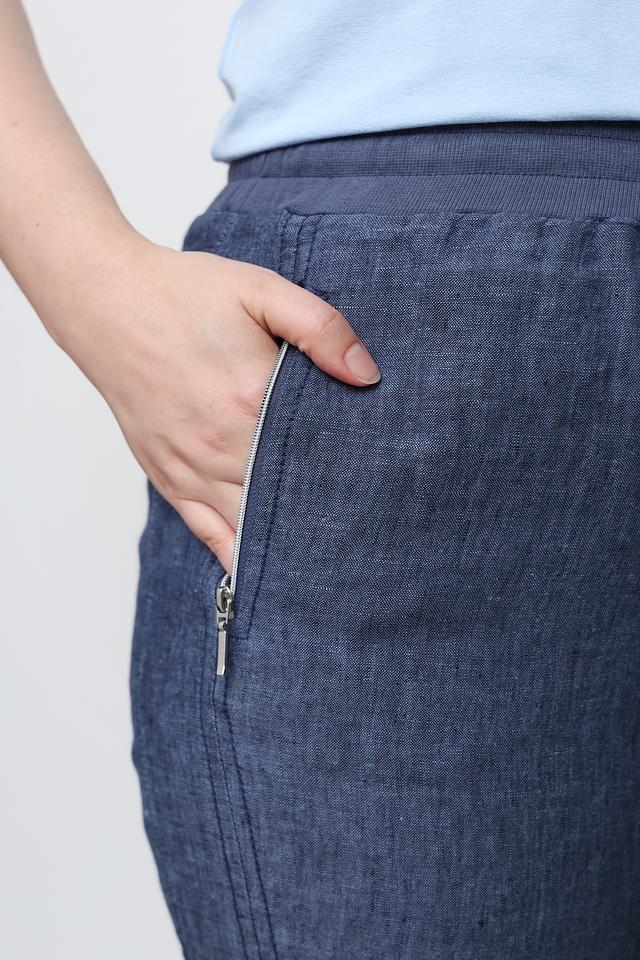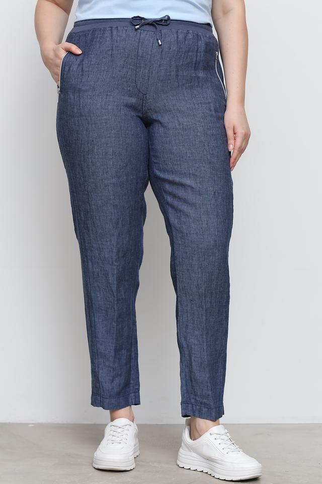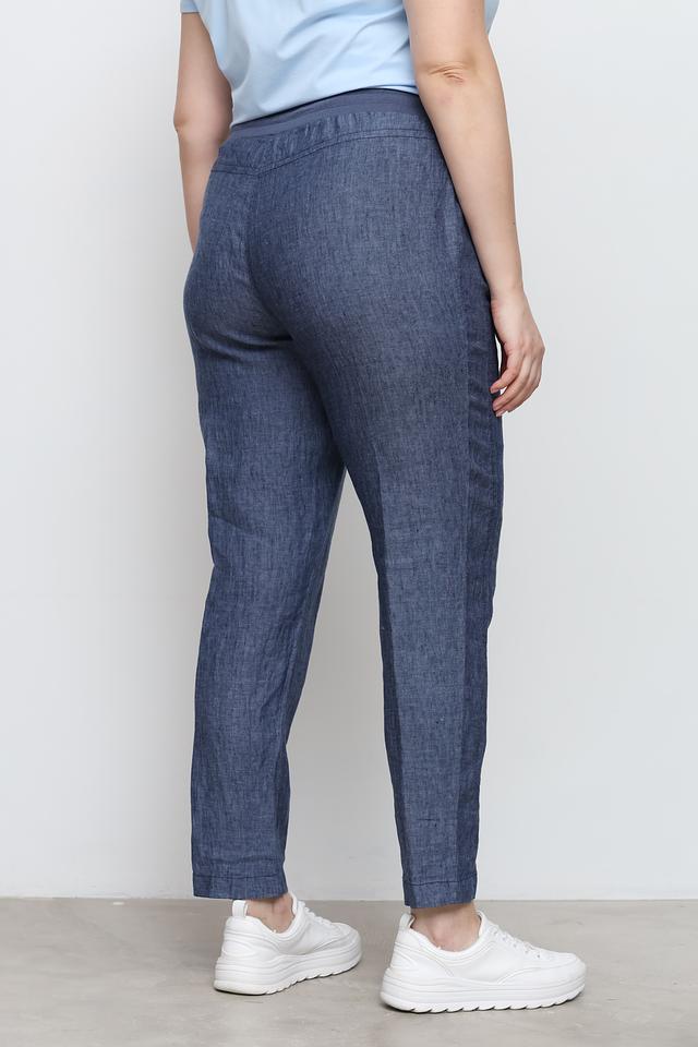 Брюки от Doris Streich цвета индиго выполнены из 100% льна. Модель с завышенной талией, боковыми карманами на молнии и эластичным поясом для комфортной посадки. Состав: лен 100%