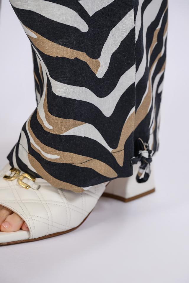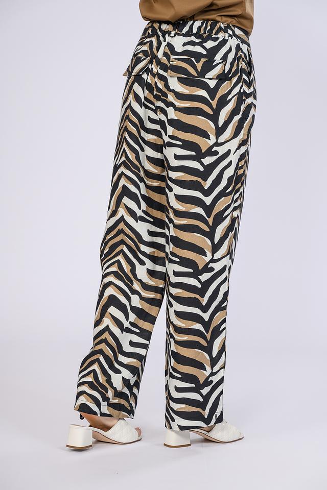 Женские брюки Emka цвета хаки с оригинальным принтом "зебра" станут ярким акцентом вашего образа. Модель выполнена из натурального льна, обеспечивающего комфорт в жаркую погоду, и имеет свободный крой. Состав: лен 100%