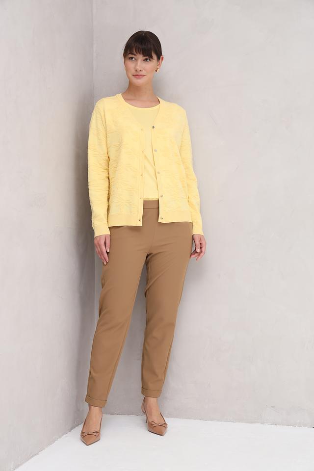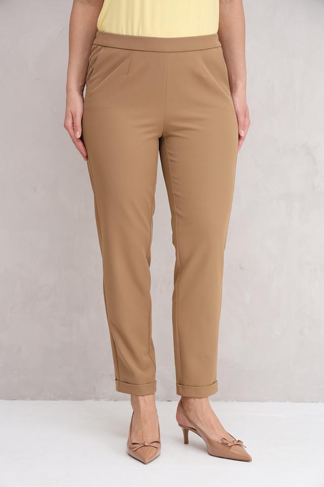 Брюки оснащены функциональными боковыми карманами. Задний карман с декоративной отделкой добавляет модели изысканности. Укороченный крой и подворот внизу создают современный и стильный вид.