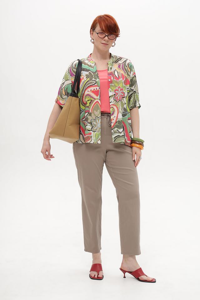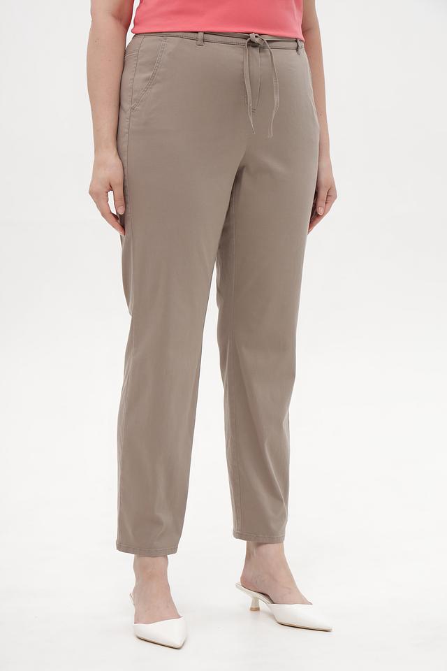 Брюки имеют прямой крой, который обеспечивает свободу движений и подходит для различных типов фигуры. Эластичный пояс дополнен кулиской, что позволяет регулировать посадку по талии и обеспечивает максимальный комфорт в течение дня.