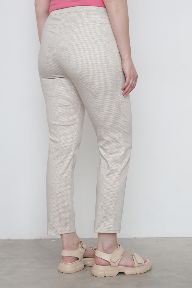Брюки имеют классический крой с зауженными к низу штанинами и эластичным поясом, что обеспечивает комфортную посадку по фигуре. Состав ткани – 97% хлопок и 3% эластан, благодаря чему брюки приятны к телу, хорошо держат форму и не сковывают движений.