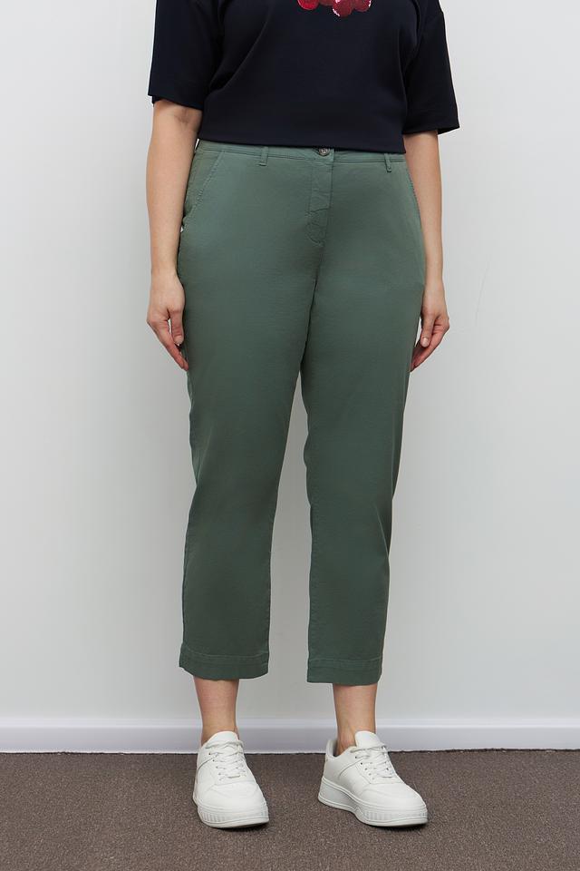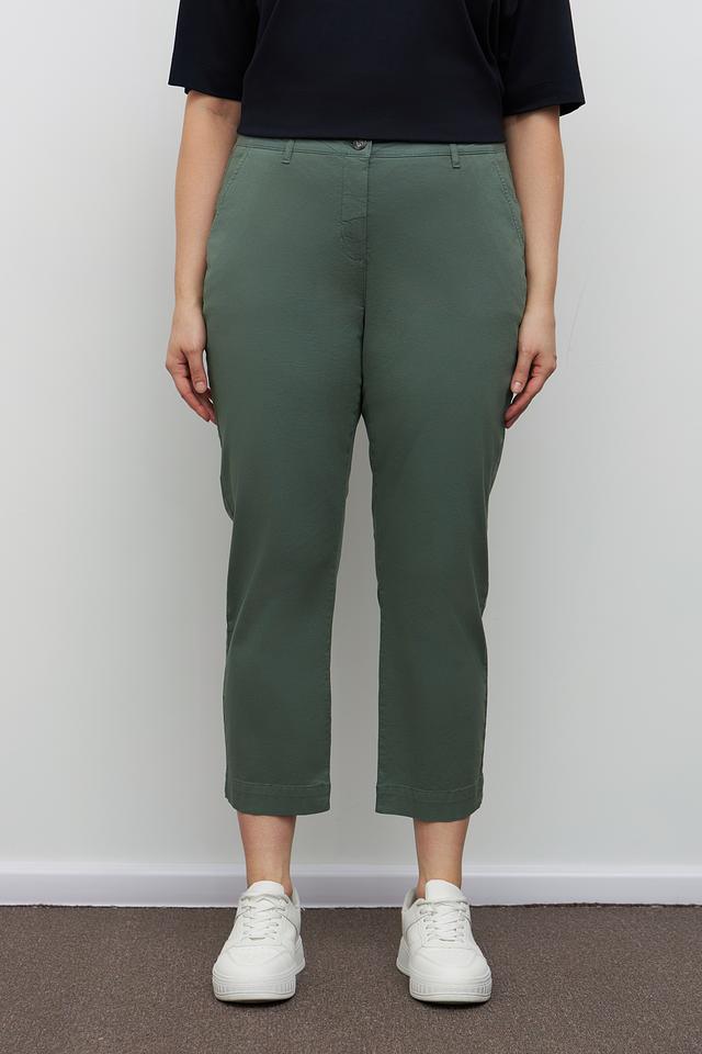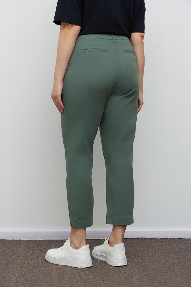 Женские брюки Frapp цвета хаки — удобная и стильная модель кюлотов с зауженным низом. Брюки выполнены из хлопка с добавлением эластана, что обеспечивает комфорт в носке и свободу движений. Состав: хлопок 97%, эластан 3%